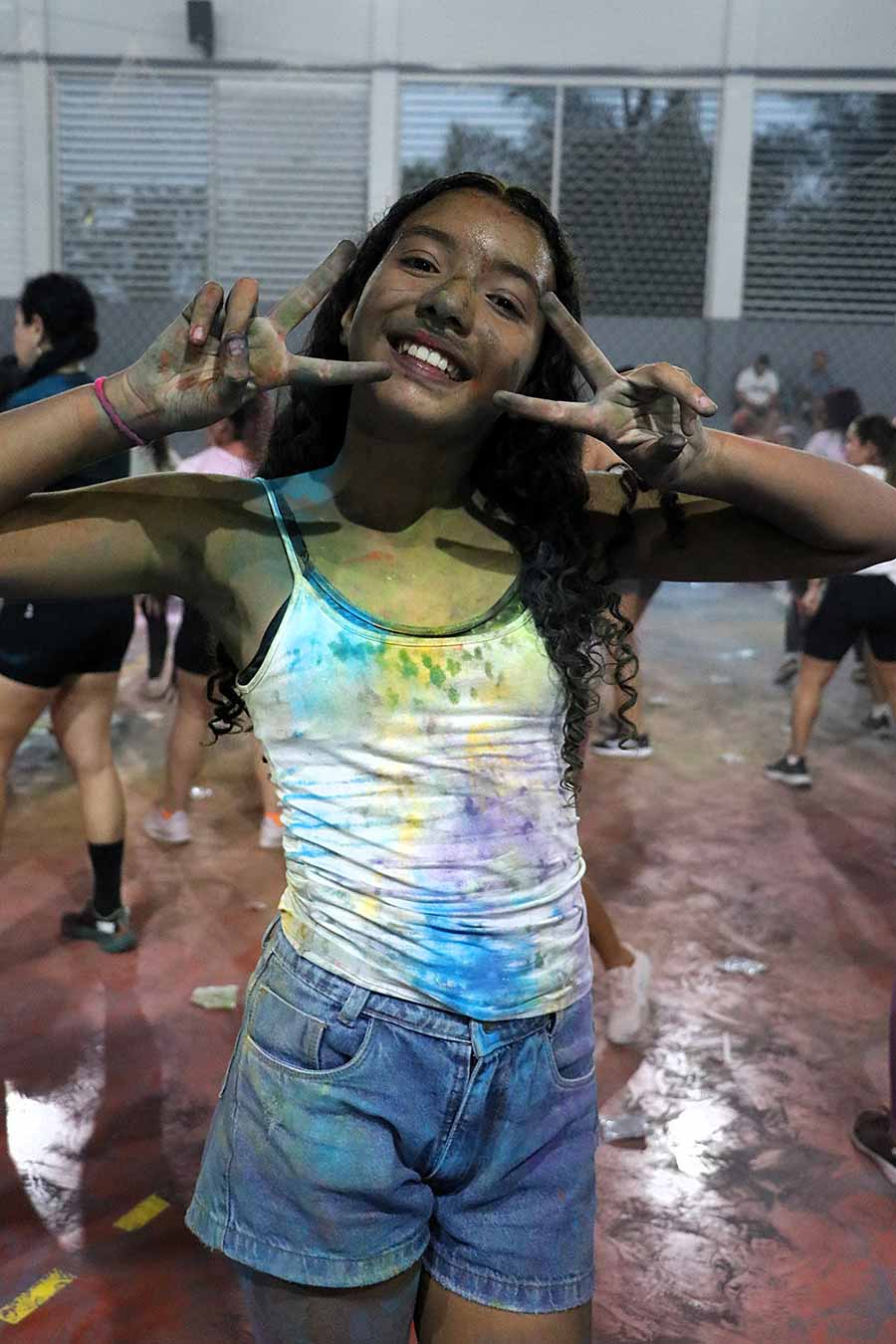 A animação também tomou conta de Maria das Graças Costa Silva, de 76 anos, que participou acompanhada da família. “Foi top, gostei demais. Vim com meus filhos e minha nora. Tinha uma professora o tempo todo ao meu lado, me auxiliando nas atividades. As pessoas eram muito simpáticas, teve lanche, banho das cores, todo mundo pintado, dancei bastante. Amei”, celebrou.