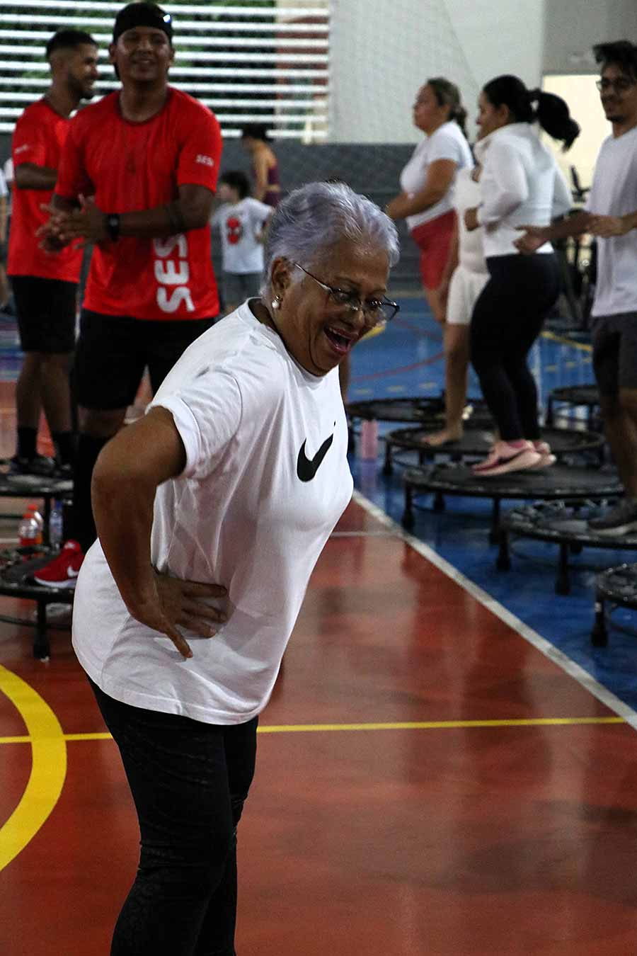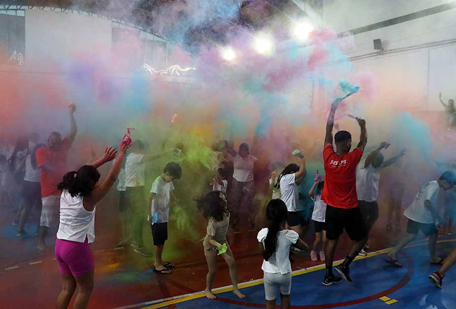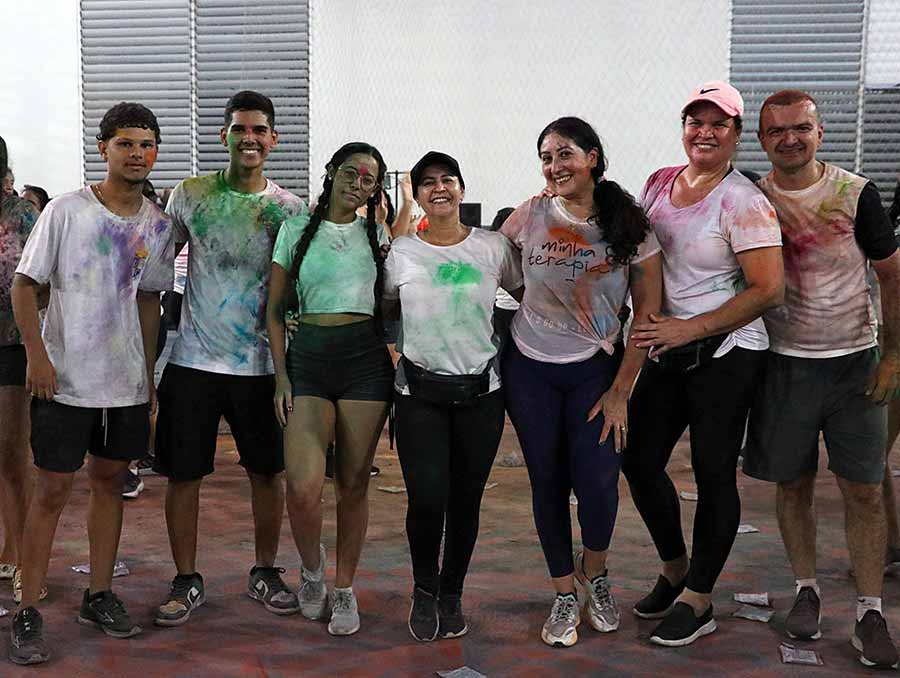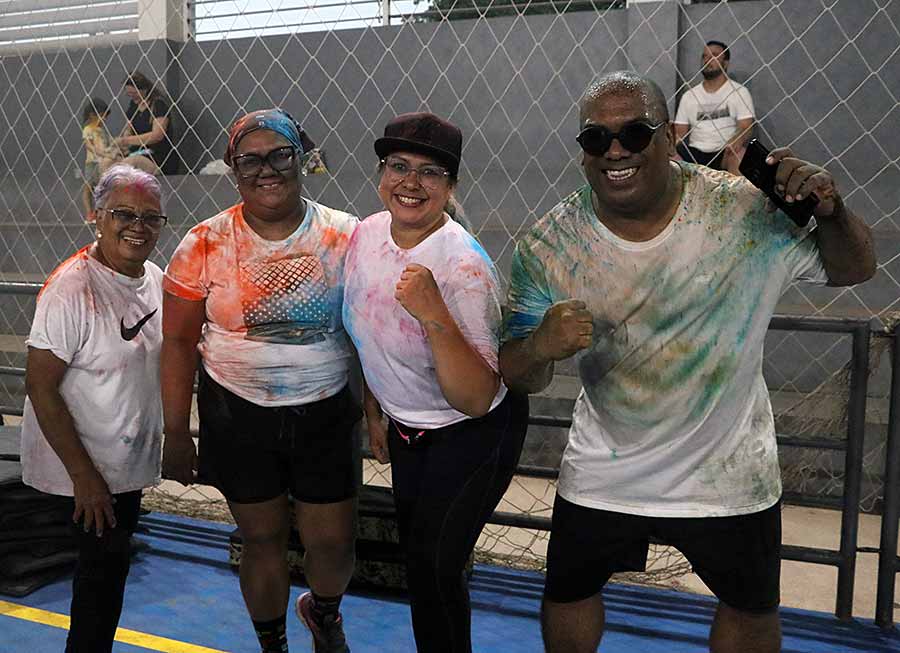 A animação também tomou conta de Maria das Graças Costa Silva, de 76 anos, que participou acompanhada da família. “Foi top, gostei demais. Vim com meus filhos e minha nora. Tinha uma professora o tempo todo ao meu lado, me auxiliando nas atividades. As pessoas eram muito simpáticas, teve lanche, banho das cores, todo mundo pintado, dancei bastante. Amei”, celebrou.